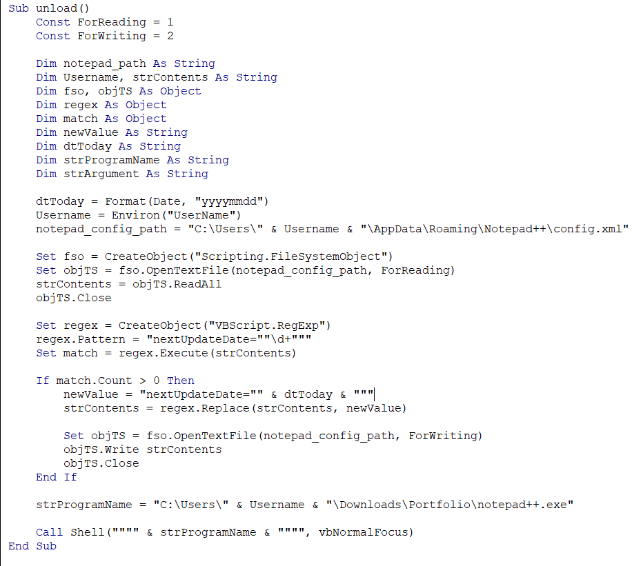 A possible avenue that can be taken is using macros to change the update date and then execute. Figure 4 is an example of a macro that can be used to change the update date to the current date and then execute Notepad++.